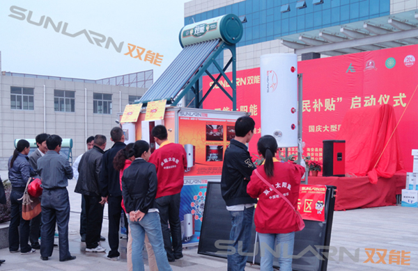 2012年9月6日,雙能太陽能成功中標國家“節能產品惠民工程”,成為海安地區唯一一家強勢中標的太陽能企業。為了為真正貫徹國家惠民政策,惠及海安地區廣大新老用戶,雙能太陽能于10月3日在雙能工業園舉辦了 “節能產品惠民補貼”首先儀式暨2012年中秋•國慶大型團購會。