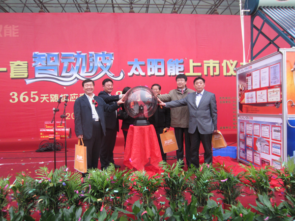 3月16日,第九屆中國國際(長沙)太陽能品牌產品博覽會暨第六屆中國國際(長沙)太陽能貿易洽談博覽會召開之際,由江蘇雙能太陽能有限公司主辦的全球第一套智動波太陽能上市儀式隆重舉行。中國中國節能協會太陽能專業委員會秘書長霍志臣、全國太陽能標準化技術委員會秘書長賈鐵鷹、國家太陽能熱水器質量監督檢驗中心(北京)副主任何濤、國家太陽能熱水器質量監督檢驗中心(武漢)總工張曉黎、陳欣部長、江蘇雙能太陽能有限公司常務副總賁道發、以及湖南衛視、中國科技日報、中國能源報、人民網、新浪網、中國房地產報、《中國太陽能產業資訊》等幾十家媒體,共同見證了代表著太陽能行業“再節能”集成技術領域前沿成果的“智動波太陽能”上市儀式及現場演示體驗活動,并為智動波太陽能揭幕、按儀式啟動球。
